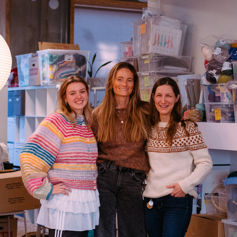 Sif, Sabina en Kat maken deel uit van ons Productteam. Zij beheren onze fantastische collectie garens en accessoires en zorgen ervoor dat alle informatie op de webshop staat, zodat onze klanten precies weten wat ze kopen. Dankzij hun expertise in de branche hebben ze een scherp oog voor kwaliteit, gevoel, kleur, duurzaamheid en die kleine details die er echt toe doen als een project klaar is. Ze maken deel uit van het team dat alles vormgeeft waarmee je uiteindelijk aan de slag gaat, van het prachtige garen tot de naalden- en haaknaaldensets, projectbags en slimme accessoires die ervoor zorgen dat alles soepel, georganiseerd en plezierig verloopt.