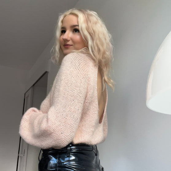 Call Me Back - Deze trui is de definitie van ‘Business in the front, party in the back!’ Met z’n losse pasvorm en mooie open rug, is deze trui perfect voor zowel chique als casual. Het patroon bevat twee verschillende modellen - eentje met een geheel open rug of met een half open rug. De trui wordt van boven naar beneden gebreid, met raglanmeerderingen.